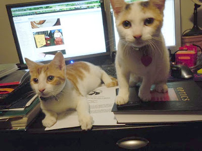 Anyway, to end, this is what I come home to every night. They just love me so much! (Spooky doesn't love anyone and hates the other kittens, hence why she is not in the picture, lol)